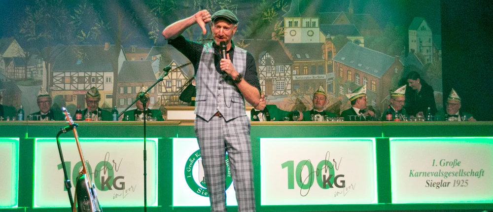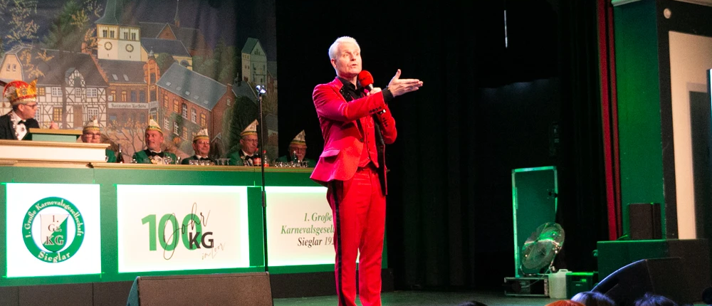 „Eisbrecher“ Guido Cantz hatte leichtes Spiel und begeisterte mit seinen flotten und frechen Geschichten die jecken Wiever in der Küz. So konnte er auch seine Gattin und seine Mutter im Saal begrüßen, was unsere Gesellschaft als Gastgeber besonders freute.
